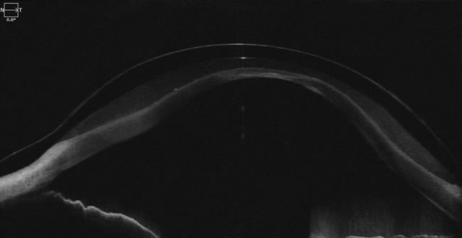AS-OCT Image of Gaudi lens on the eye. Courtesy of Dr. Aaron Wolf, Austin Optometry Group.